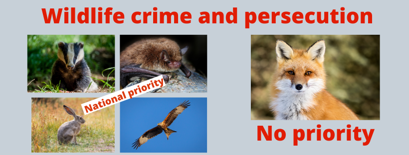 I have challenged the NWCU on this issue this morning, and received the response that it is a local issue and a police matter and not a national issue! I’ve thought about this and it doesn’t make sense. The hunts in my county alone cross police boundaries, which is one of the reasons the NWCU gave me in defining what constitutes local and national. I’m not wholly convinced by this argument, and I don’t want to push the case for reducing the focus on the other species such as hares, raptors, and badgers, but I do think the fox has a place on this list, and it can be argued that the priority might be higher than for some of the other species.